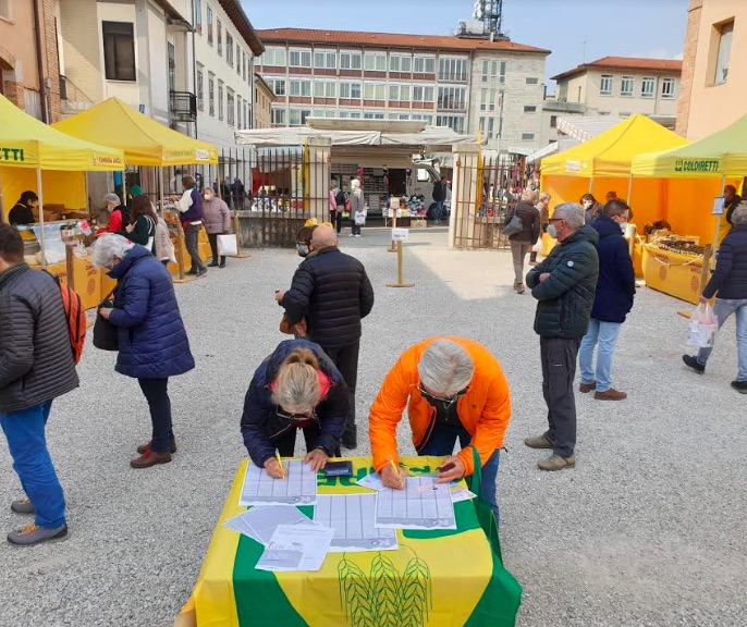 Venezia Mestre, 11 aprile 2021 – Da Rovigo fino a Belluno per firmare la petizione promossa dal comitato civico “mamme zero consumo suolo”. Il movimento guidato da Elisabetta Russo professoressa rodigina sta raccogliendo consenso in tutta la regione. La docente rivoltasi a Coldiretti si e’ proposta come animatrice di una petizione dei cittadini che sostengono la battaglia degli agricoltori contro il ‘fotovoltaico a terra’ e da oggi i mercati di Campagna Amica sono diventati i punti logistici dell’operazione. Tra i banchi dei produttori è possibile apporre la propria firma sul modulo predisposto dagli operatori.